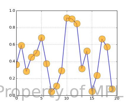 ax.plot(np.random.rand(20), '-o', ms=20, lw=2, alpha=0.7, mfc='orange')