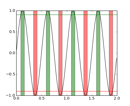 axhspan(ymin, ymax, xmin=0, xmax=1, **kwargs)