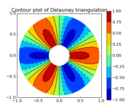 Note: tricontourf fills intervals that are closed at the top; that is, for boundaries z1 and z2, the filled region is: