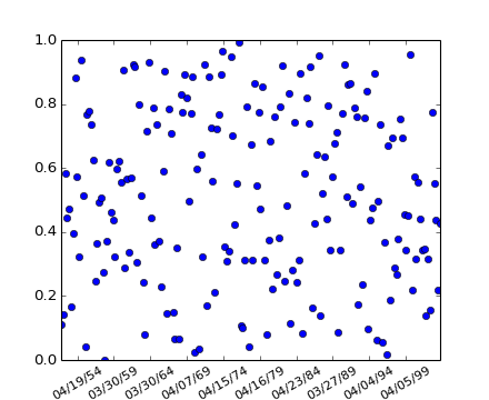 s = np.random.rand(len(dates)) # make up some random y values
