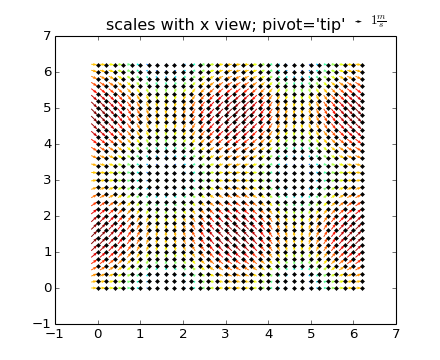 Q = quiver( X[::3, ::3], Y[::3, ::3], U[::3, ::3], V[::3, ::3],