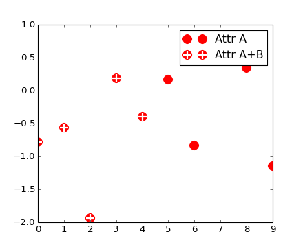 plt.legend([p1a, (p1a, p1b)], ["Attr A", "Attr A+B"])