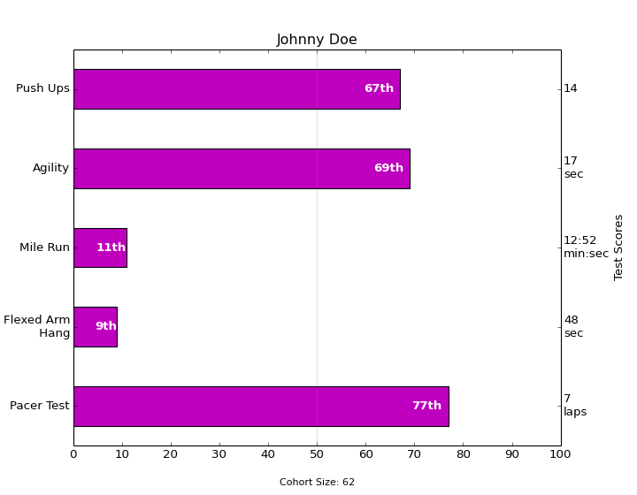 testNames = ['Pacer Test', 'Flexed Arm\n Hang', 'Mile Run', 'Agility',