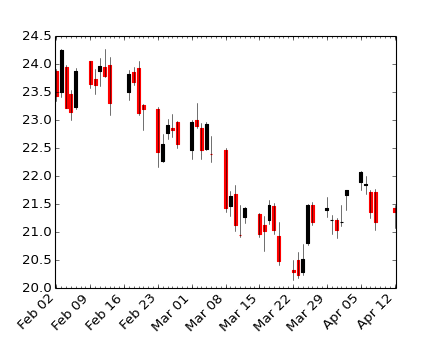 from matplotlib.finance import quotes_historical_yahoo, candlestick,\