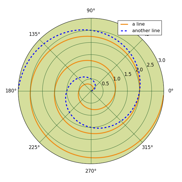 ax.plot(0.5*theta, r, color='blue', ls='--', lw=3, label='another line')